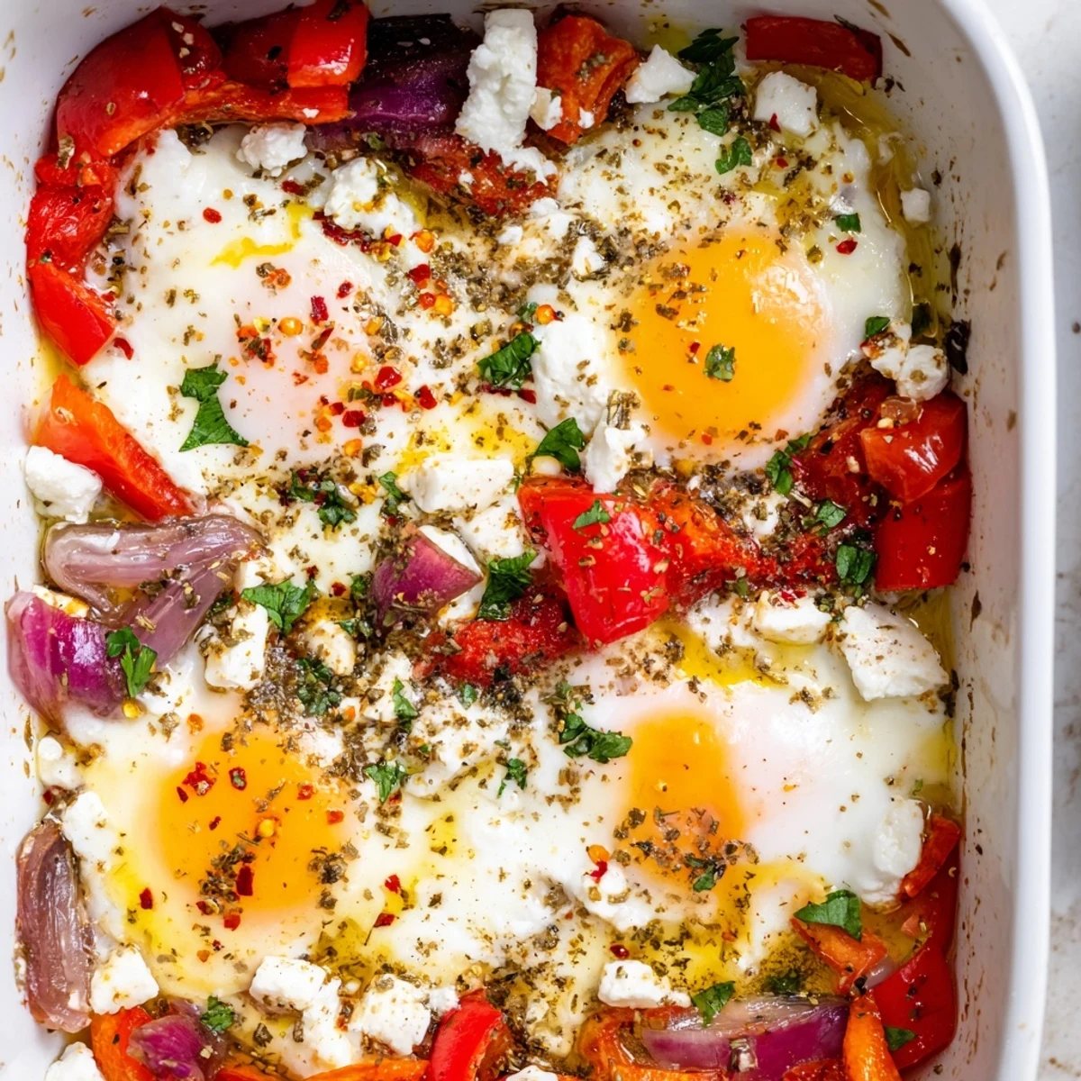This Mediterranean-inspired dish combines creamy feta cheese with perfectly baked eggs nestled in a bed of sautéed tomatoes, bell peppers, and red onions. The aromatic blend of oregano, garlic, and fresh parsley creates layers of flavor, while optional Greek yogurt adds extra richness. Ready in just 28 minutes, this versatile breakfast works beautifully for brunch, served with crusty bread or pita.