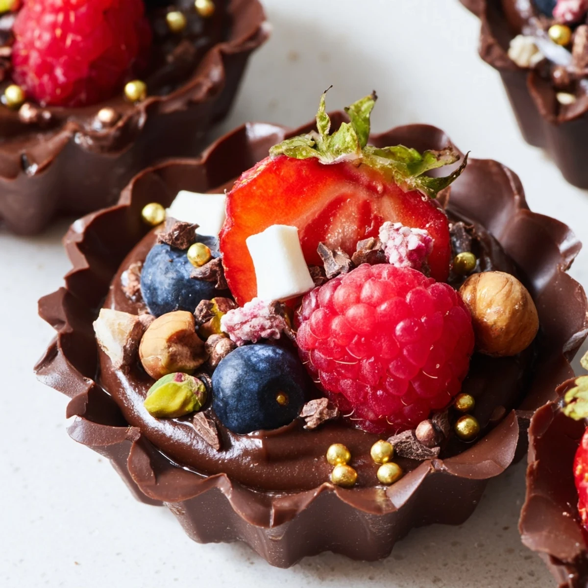 - Pipe or spoon the mousse into each chocolate cup, filling them about two-thirds full to leave room for all those gorgeous toppings. Pile on the berries, nuts, marshmallows, and chocolate curls however you like—there's no wrong way to decorate these. If you're feeling extra fancy, add a tiny pinch of edible gold leaf to a few cups for real showstoppers.