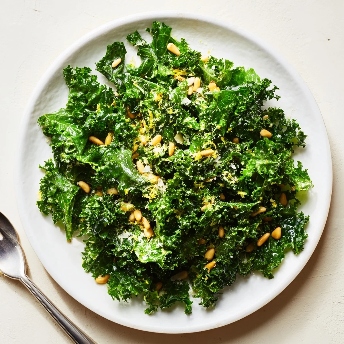 This vibrant kale salad features tender massaged leaves coated in a bright garlic-lemon dressing. The zesty combination of fresh lemon juice, garlic, and Dijon mustard creates the perfect balance of acidity and savory depth. Finished with salty Parmesan and optional toasted pine nuts, each bite delivers crisp texture and refreshing flavor. Ready in just 15 minutes with no cooking required.