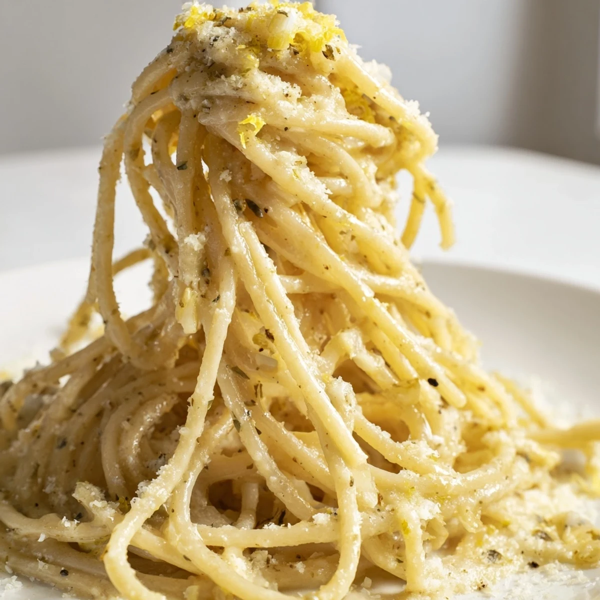 The sauce comes together by emulsifying lemon juice, butter, and Parmesan with starchy pasta water, creating a silky coating that clings beautifully to spaghetti or linguine.